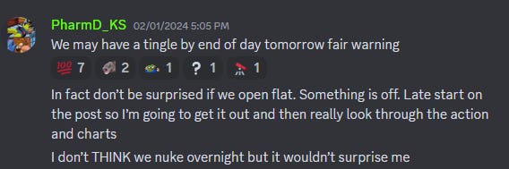 Discord policy may change to a wait period in the near future. Instructions for access (free for paid substack subscribers) are HERE. Reminder that it can take a couple days to get the invite link and ultimately assigned member status once in the “landing” area of Discord.