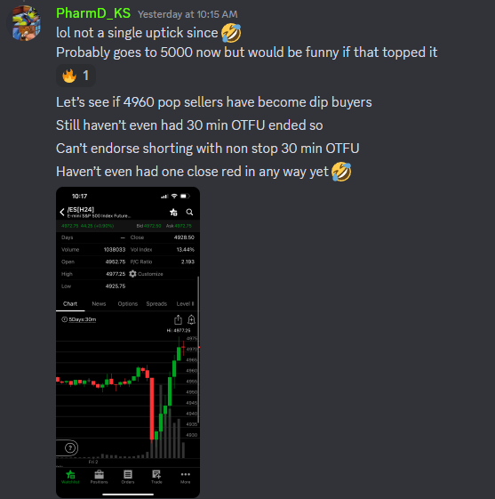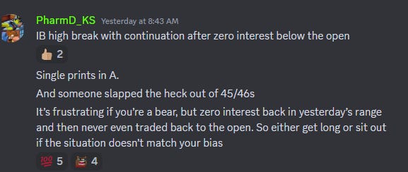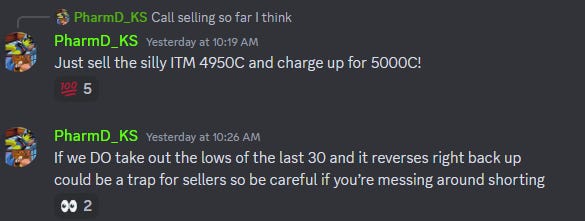 The caution was given to avoid shorting at 10:43 EST (discord is EST-2 for me)as a trend day was clearly in the works.