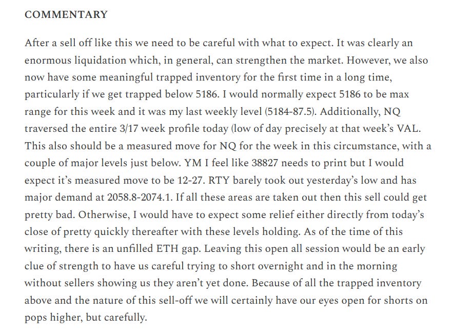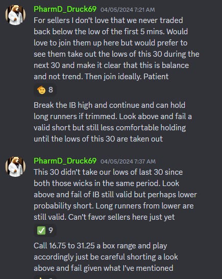 Once we opened, it was pretty clear that sellers were not in control and a trend move up was underway. There was simply no good short setup, and I even warned against attempting a short on a look above and fail of the IB high (first 60 minutes high) which is generally one of my favorite short setups: