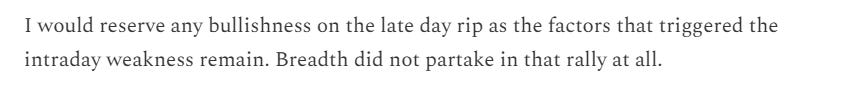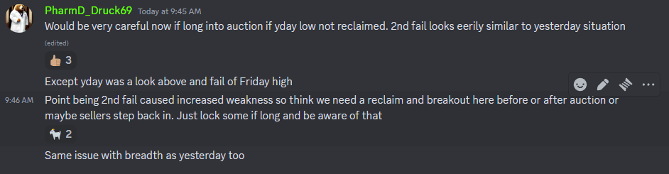 Breadth was absolutely horrendous again today, and again did not participate on index moves higher. Every attempt to get back into yesterday’s range was rejected, leading to a late day liquidation of the big 86/88 buyer.