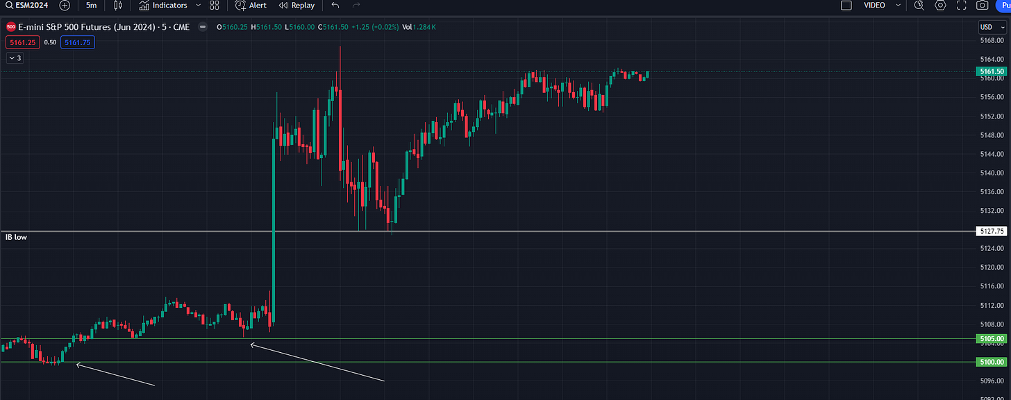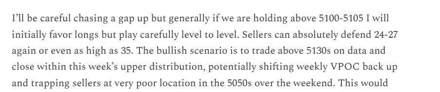 Our bias Friday on SPY 0.00%↑ was toward longs if we held ES 5100-5105 overnight, with bullish continuation if NFP took us and held us in the 5130s. The bulls did their job perfectly. From the Thursday night plan: