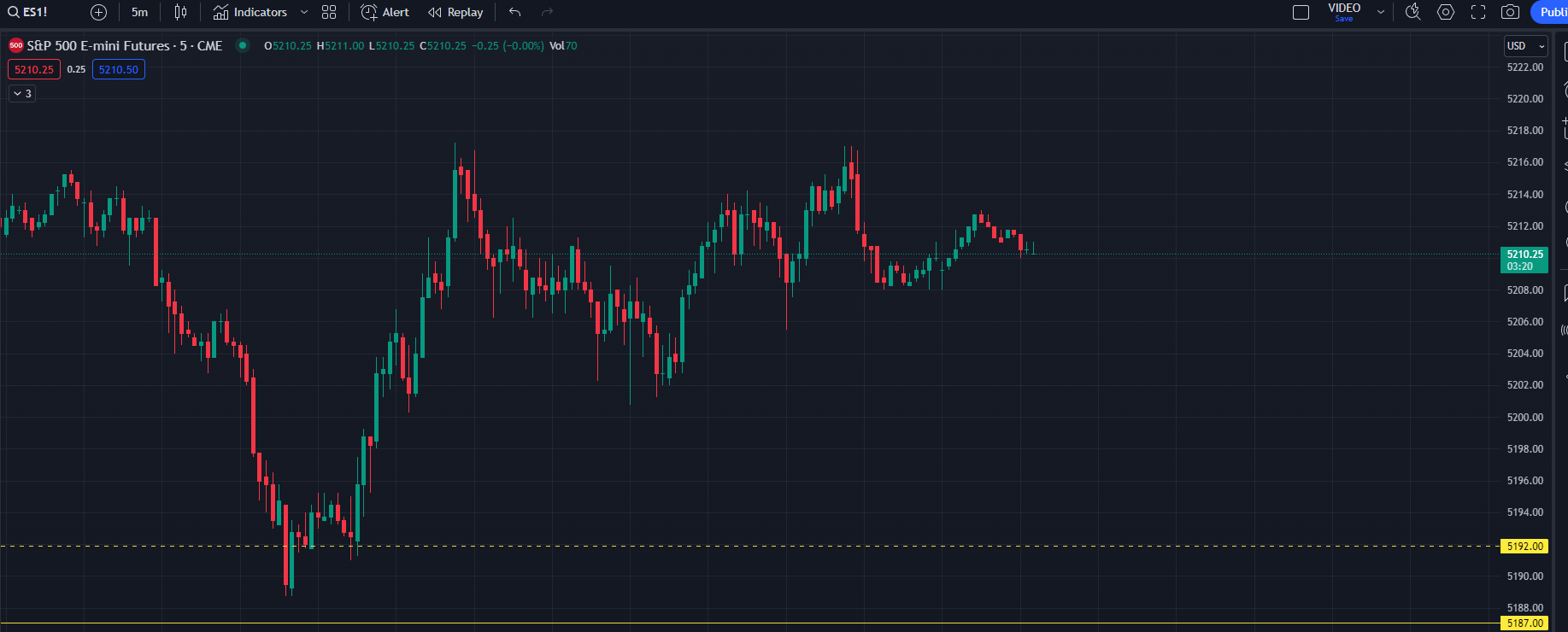 The overnight low was 5188.75 and the market trended straight up at the open to 5217.25.
