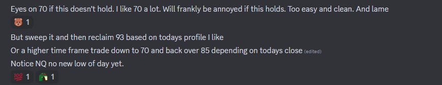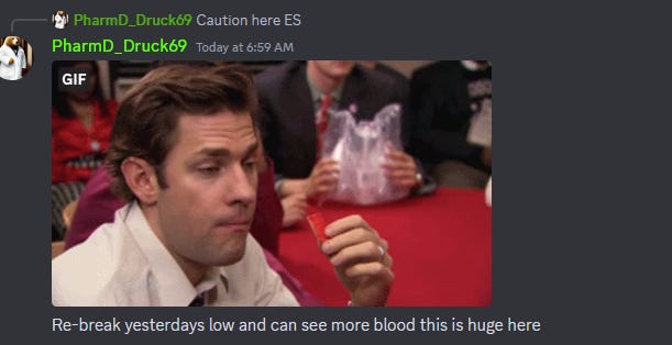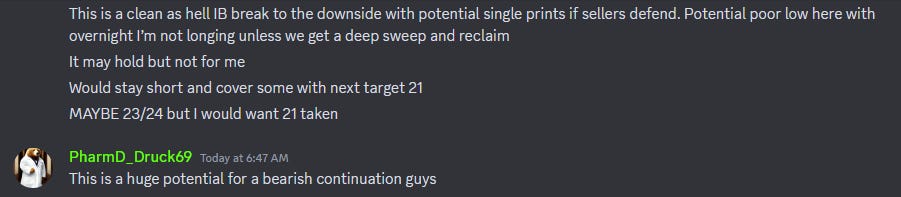 The IB low was then back tested from below, caution was warranted for anyone long (though I had said I personally would not long it).