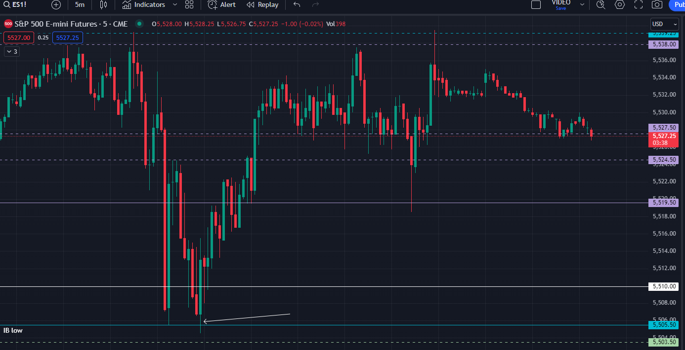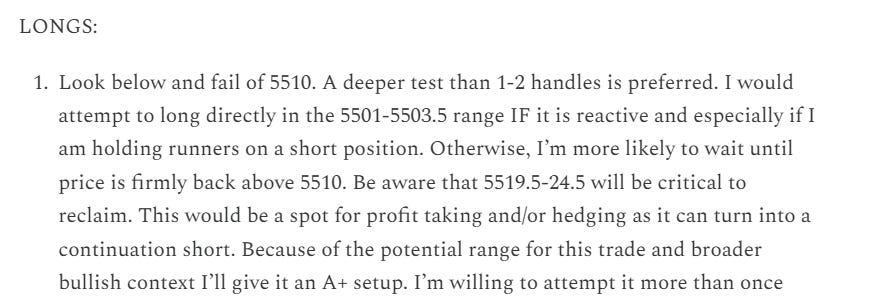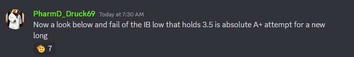 Today’s plan was very straightforward with SPY 0.00%↑ and QQQ 0.00%↑ trading in a box. As we were trading toward the bottom of the box, our favored traded was a look below and fail for a long (also a weekly long setup from the weekly plan). This could not have set up more perfectly in the Discord as it played out as a look below and fail of the IB low (5.5 IB low and 4.5 low of day) as well. This long cleared 30+ handles.
