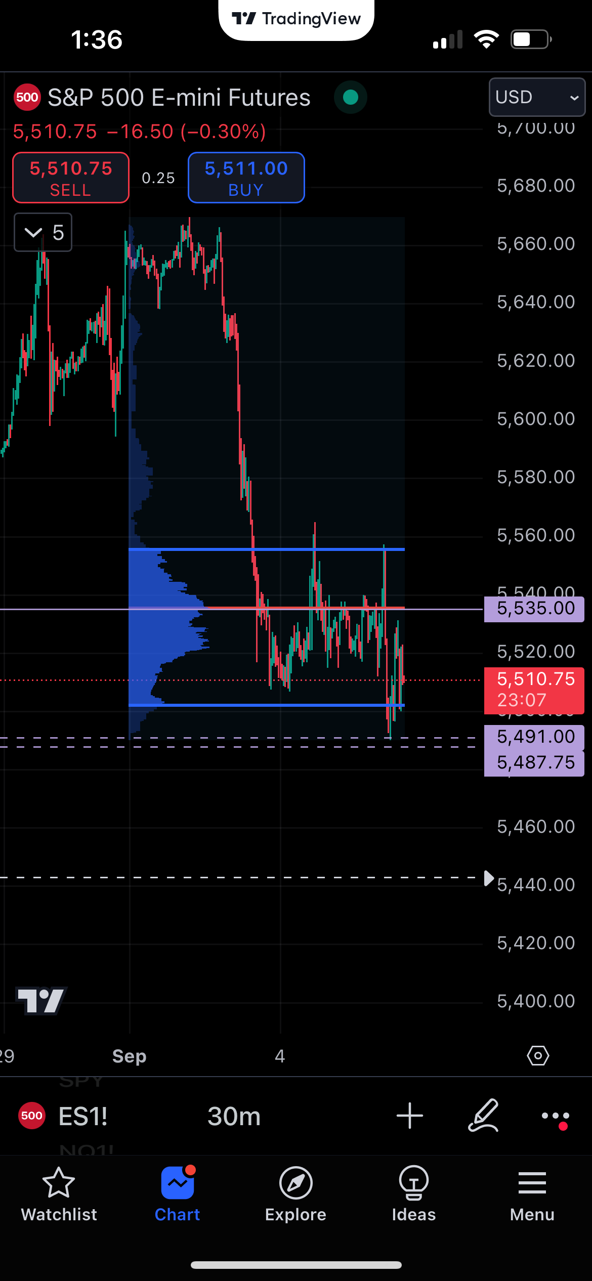 All indices are gapping value lower on a weekly basis. This is quite bearish. That said ES hit my major downside target for the 5585-5665 box breakdown and NQ is holding a critical spot. We have NFP tomorrow and I’ve said all week it makes sense for ES to balance near 5530s ahead of NFP. Here is your volume profile for the developing week. An aggro sell Monday followed by balance. If you’re familiar with how to play this profile shape (a b-shaped profile) then you’re all set for tomorrow. We’ll discuss tonight as I do think NFP is the major event for this week.