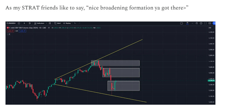 SPY 0.00%↑ continues to track well according to the above video. SPX closed 35 handles from its all-time high and SPY roughly $3. ES is further off due to normal contract decay as we approach contract roll. You may recall this picture from two weeks ago: